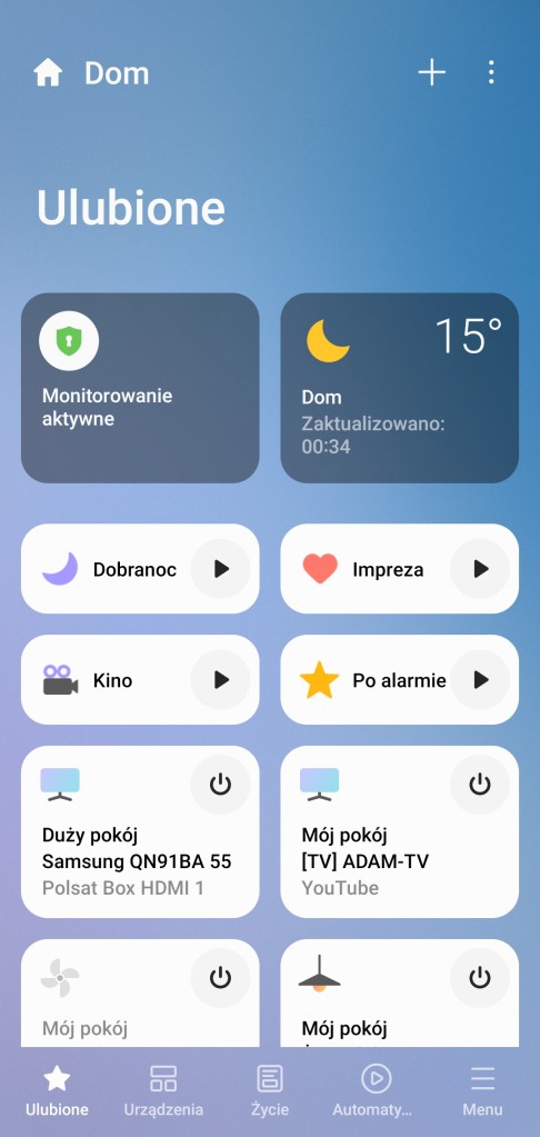 - Czas reakcji 1-2 sek. w ekosystemie SmartThings