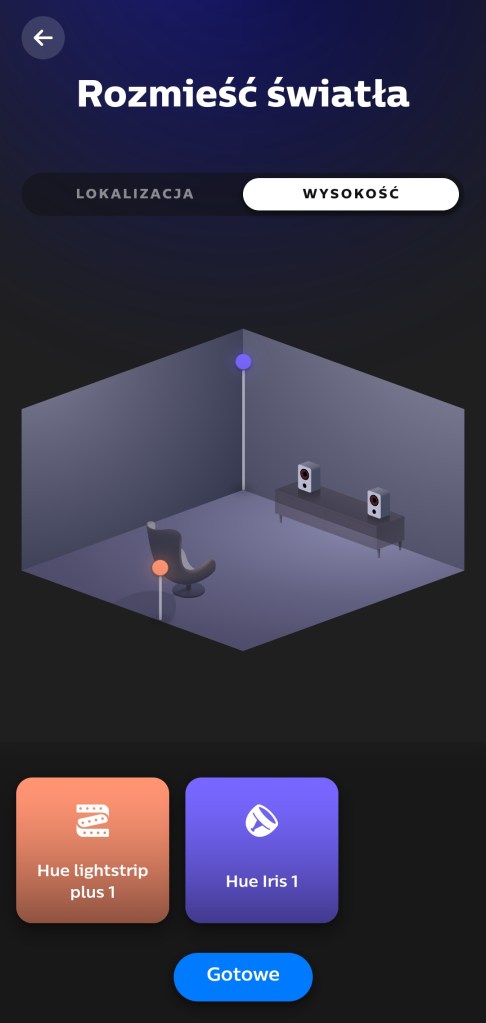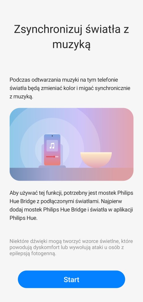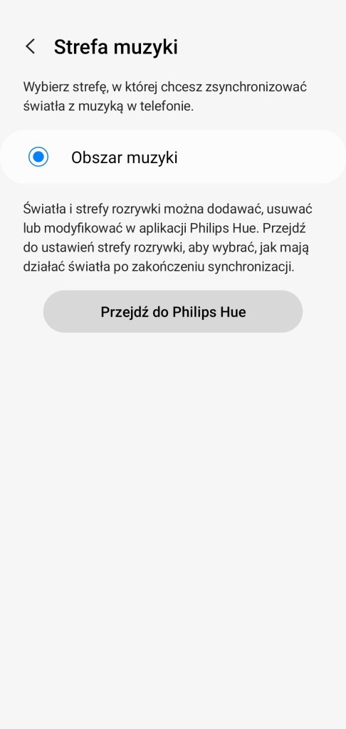 Na początku musimy posiadać już skonfigurowany ekosystem Philips Hue, w aplikacji Philips Hue dodany mostek Hue Bridge i światła Hue, a następnie utworzony muzyczny obrzar rozrywki. Zapraszamy do oddzielnego wpisu dotyczącego podłączenia urządzeń Hue.