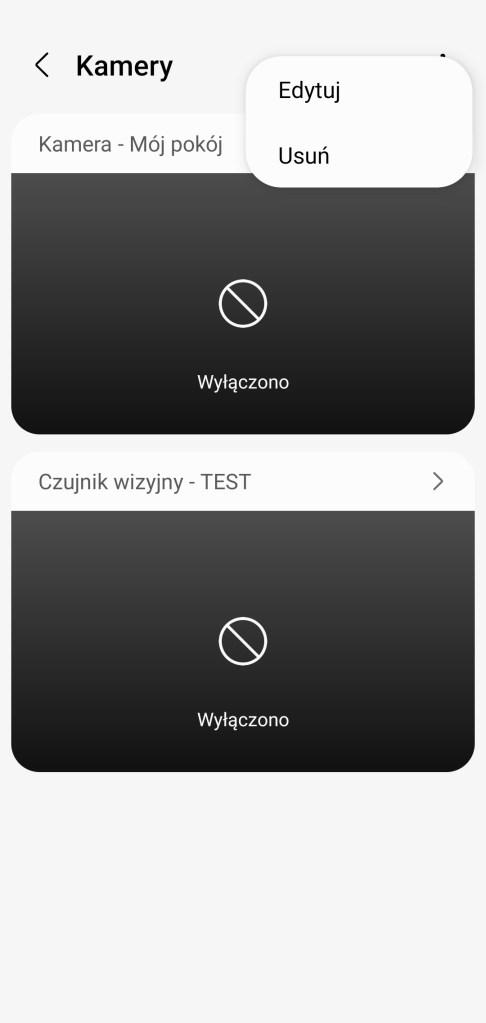 W każdej chwili wchodząc w daną grupę kamer i wybierając Więcej opcji ( ⋮ ), możemy podmienić urządzenia w grupie jak i zmienić nazwę oraz ją usunąć.