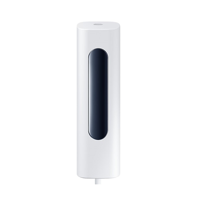 SmartThings Vision posiada matrycę w rozdzielczości 640×400 z mikro obiektywami, która za pomocą technologii DVS wychwytuje kontury obiektu przemieszczającego się. Obiektyw rejestruje 30 klatek na sekundę, a pole widzenia to 91° szerokości i 70° wysokości oraz głębia 0.5~7 metrów. Dodatkowo zainstalowano lampę LED, która ma doświetlić pomieszczenie aby lepiej wykrywać ruch w trudnych warunkach oświetleniowych. Na pokładzie znajdziemy procesor Exynos 7570, 1 GB pamięć RAM oraz 8 GB pamięci Flash, nie posiadamy slotu na kartę SD. Kupując sensor mamy 24 godziny darmowego przechowywania 10 sekundowych nagrań w chmurze SmartThings. Temat subskrypcji rozwiniemy w dalszej części wpisu. Przy obiektywie znajduje się dioda LED wskazująca stan urządzenia, podstawowe to: czerwona – sieć rozłączona, czerwona migająca – czujnik rejestruje obraz oraz żółty migający – wykryto ruch i osobę. Komunikacja odbywa się po protokole Wi-Fi (802.11 b/g/n 2,4 GHz), czujnik ruchu nie wymaga posiadania centrali inteligentnego domu SmartThings Hub. SmartThings Vision musi być stale zasilany, nasilany jest z sieci. Do dyspozycji mamy kostkę zasilającą na USB oraz 2 metrowy kabel. Sensor jest przeznaczona do użytku pokojowego w temperaturze -20°C ~ 50°C. Vision posiada 9 cm wysokości, 2,6 cm szerokości oraz 3 cm głębokości. Sensor jest dostępny tylko w kolorze białym, waga to tylko 34,4 gram.
