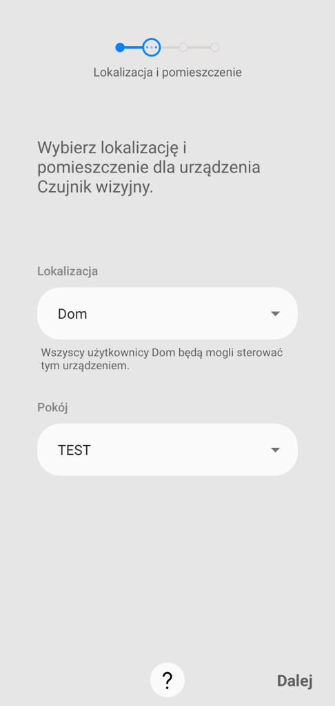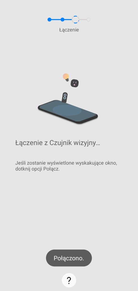 Aby korzystać z czujnik wizyjny SmartThings Vision niezbędna jest aplikacja SmartThings, możemy ją pobrać z Google Store (Android 7.0 lub nowszy) bądź AppStore (iOS 12.0 lub nowszy). Przed rozpoczęciem instalacji zalecam połączenie smartfonu z prywatną siecią Wi-Fi obsługującą pasmo 2.4 Ghz. Aby zainstalować urządzenie należy postępować zgodnie z instrukcją na ekranie aplikacji. Uruchamiamy aplikację SmartThings, na ekranie głównym aplikacji, klikamy Dodaj ( + ), kolejno stuknij Dodaj urządzenie, przesuwamy w dół do sekcji marek Wybór z listy urządzeń i sortuj Według marki, wybieramy markę SmartThings. Z listy dostępnych typów urządzeń wybieramy Czujnik wizyjny. Nastąpi przygotowanie do instalacji, rozpoczynamy proces konfiguracji czujnika, klikając Rozpoczęcie. Skanujemy kod QR lub wpisujemy go ręcznie (znajduje się na spodzie sensora). Podłączamy czujnik wizyjny do zasilania. Wybieramy lokalizację i pokój, kliknij Dalej. Nastąpi łączenie, wybieramy sieć Wi-Fi z wyszukanych. Nastąpi proces rejestracji czujnika, po dłuższej chwili pojawi się komunikat o pomyślnym połączeniu. Pozostaje już tylko nadać nazwę sensorowi i kliknąć Gotowe. Czujnik Vision pojawi się w określonym pokoju.