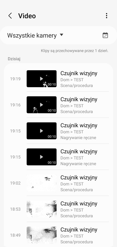Poniżej przedstawiamy nagranie w ciągu dnia z czujnika ruchu SmartThings Vision.