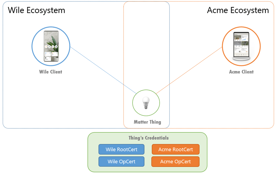 Każdy ekosystem ma osobny materiał zabezpieczający, a klienci z takich ekosystemów nawiązaliby własne bezpieczne połączenia z urządzeniem.