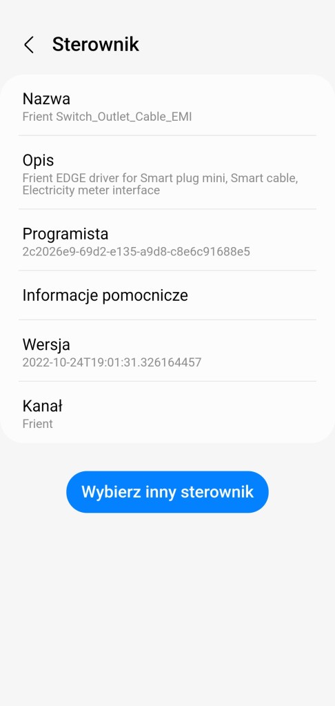Jeśli Twoje urządzenie nie korzysta ze sterownika SmartThings Edge, zalecamy jego zmianę. Niestety aby zmienić sterownik naszego urządzenia konieczne jest jego usunięcie i ponowne dodanie do ekosystemu inteligentnego domu. Jeśli jednak Ci się nie spieszy to mamy informację, że wszystkie urządzenia w przyszłości przejdą na nowe sterowniki, po wygaśnięciu w ekosystemie SmartThings środowiska programistycznego Groovy. Nastąpi to do końca 2022 roku.