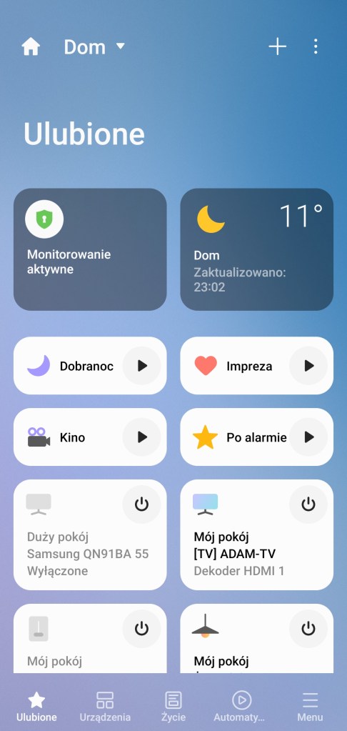 - Czas reakcji 1-2 sek. w ekosystemie SmartThings