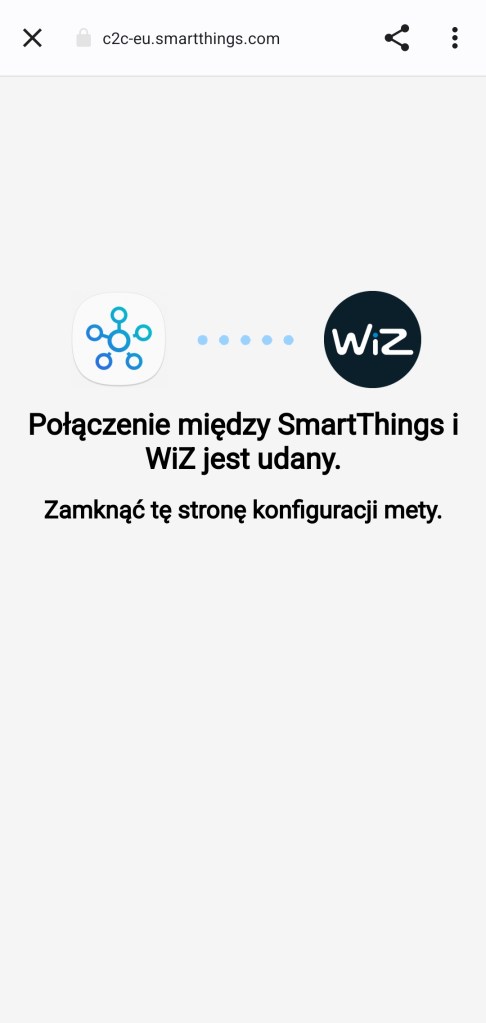 Pomyślna zgoda na integracje z aplikacją SmartThings