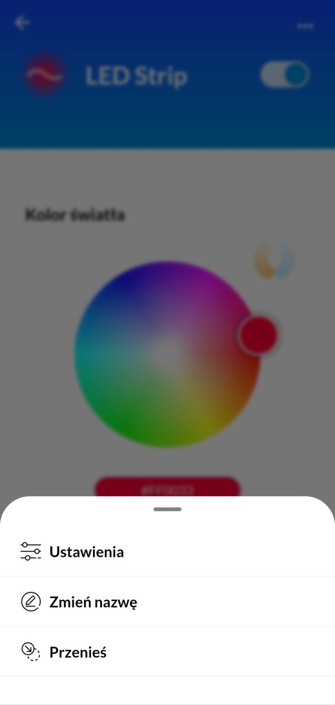Dodatkowo w ustawieniach znajdziemy możliwość konfiguracji płynnego włączenia/wyłączenia światła oraz standardowe możliwości jak zmiana nazwy czy ikony.