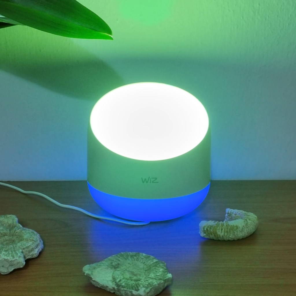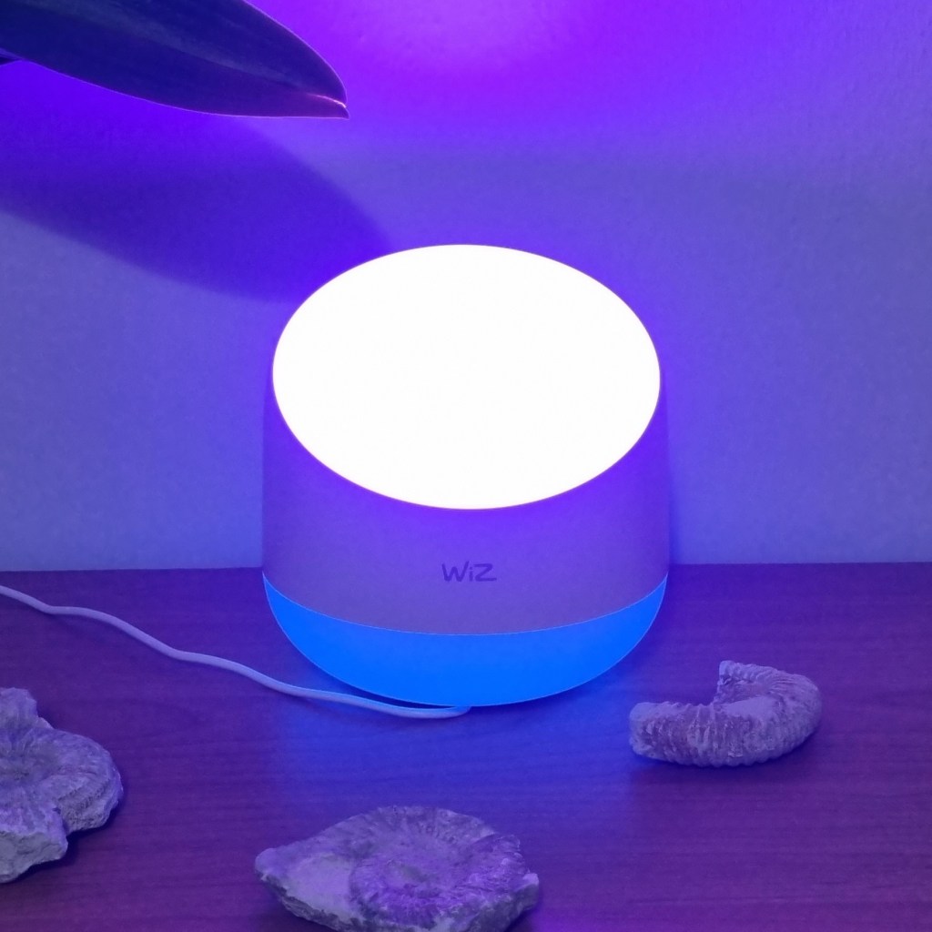 Inteligentna lampa stołowa WiZ Squire Zone pozwoli oświetlić wszystkie zakątki pomieszczenia kolorowym światłem rzucanym na ścianę. Za pomocą aplikacji WiZ lub przy użyciu poleceń głosowych możesz przyciemniać i rozjaśniać światło lub korzystać z zaprogramowanych trybów oświetlenia w konfiguracjach Wi-Fi.