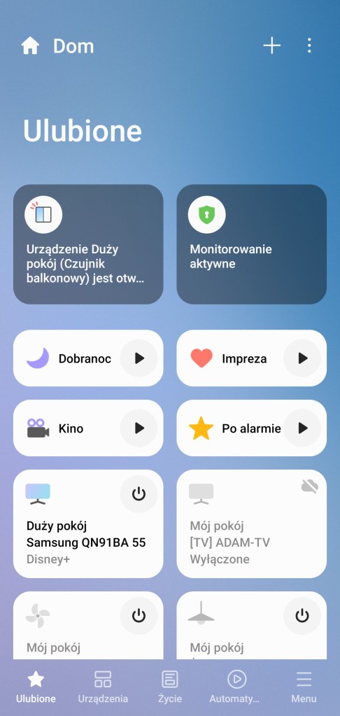 - Czas reakcji 1-2 sek. w ekosystemie SmartThings