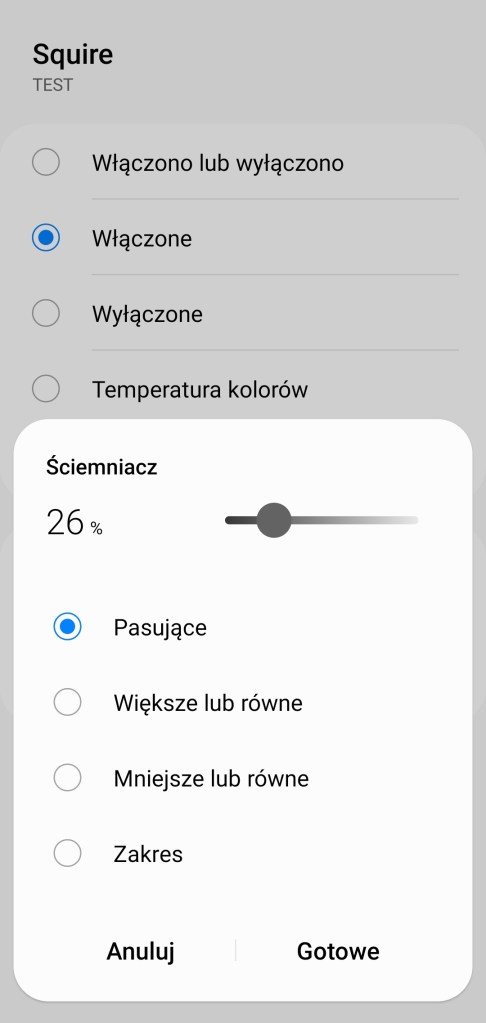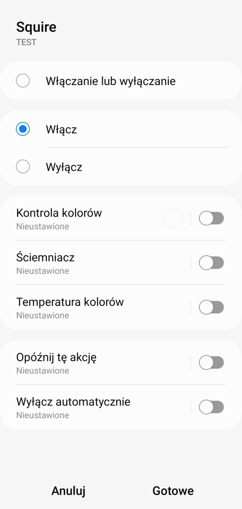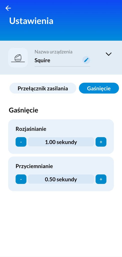 Dodatkowo w ustawieniach znajdziemy możliwość konfiguracji płynnego włączenia/wyłączenia światła oraz standardowe możliwości jak zmiana nazwy.