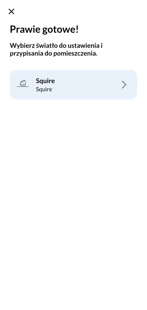 Na początku musimy podłączyć lampę Squire do zasilania za pomocą dołączonego zasilacza. Zanim przejdziemy do instalowania lampy musimy pobrać aplikację WiZ z Google Store bądź AppStore. Po zainstalowaniu aplikacji możemy przejść do dodania jej do aplikacji WiZ. Pełną konfigurację z tworzeniem pokoi przedstawiamy tutaj. Jeśli posiadamy już utworzony pokój, możemy przejść do dodania lampy, w prawym górnym rogu ekranu klikamy Dodaj urządzenie ( + ). Wybieramy do którego pokoju dodajemy urządzenie. Klikamy odpowiedni typ urządzenia, w tym przypadku Oprawa. Teraz rozpoczynamy parowanie urządzenia (informacja o długości fali Wi-Fi, dostępna jest tylko 2,4 GHz), wpisujemy dane do naszego routera Wi-Fi. Zależenie czy nasze urządzenie jest całkowicie nowe czy było już używane wybieramy odpowiednią opcje, w naszym wypadku to Tak, zupełnie nowe. Wykonaj instrukcje na ekranie inicjującą parowanie lampy, kliknij Start. Po chwili zostanie znaleziona lampa, klikamy nazwę. Następnie przechodzimy przez proces początkowej konfiguracji, nadajemy nazwę, wybieramy opcje dotyczące przełączania zasilania (do wyboru WiZclick lub Ostatni status), kończymy proces wybierając Gotowe, od teraz możemy sterować lampą LED z poziomu aplikacji WiZ.