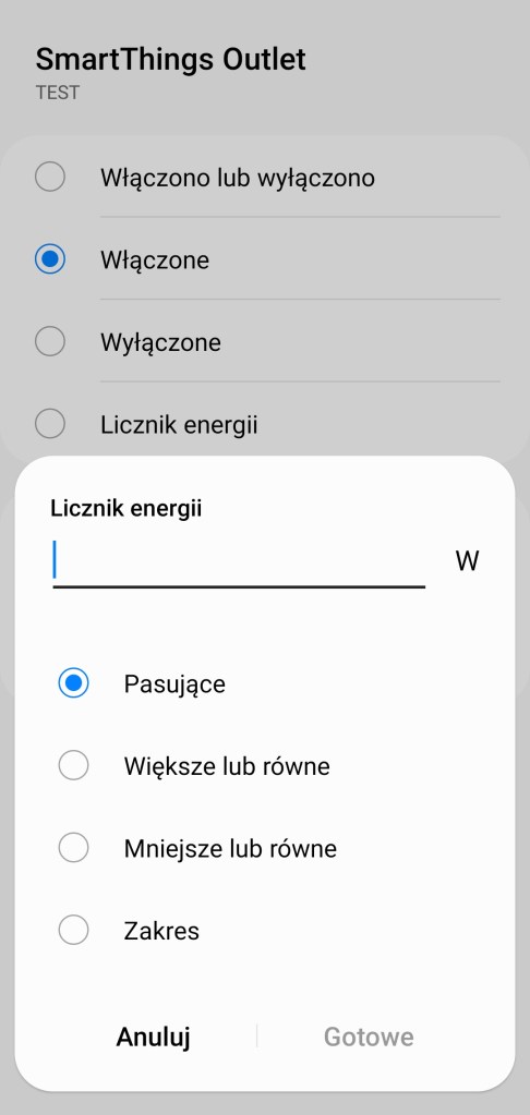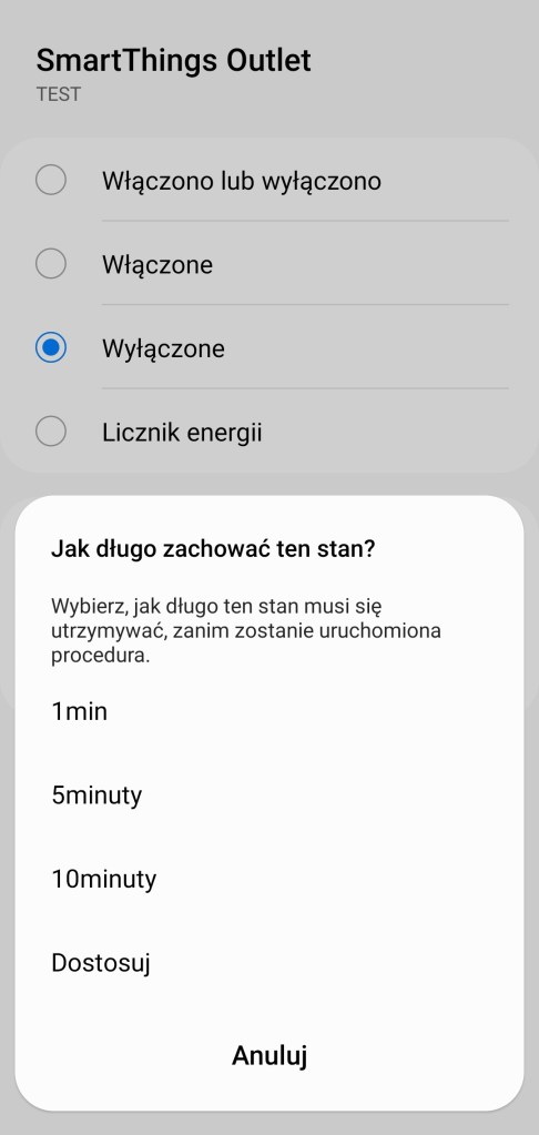 Tworzenie procedur (dawniej automatyzacje) „Jeśli … to Wtedy” musimy podzielić na dwa etapy, ponieważ znacznie różnią się dostępne opcje jeśli inicjujemy warunek „Jeśli” bądź „Wtedy”. W pierwszej możliwości „Jeśli” urządzenie pozwala na wybranie opcji „Włączono lub wyłączono” czyli zmiana stanu, oraz „Włączone” i „Wyłączone” oraz „Licznik energii”, gdzie możemy otrzymać powiadomienie, kiedy tylko ustalona przez nas wartość pasuje, jest większa/mniejsza niż odczytana oraz zakres podanych wartości. Posiadamy również możliwość ustawienia jak długo dany stan ma trwać, zanim uruchomiona zostanie procedura. W drugiej możliwości „Wtedy”, mamy ponownie opcje „Włączono lub wyłączono” – przypomnijmy zmiana stanu, „Włączone” i „Wyłączone”. Dodatkowo akcję uruchomienia możemy opóźnić o dowolny czas, jak i wyłączyć automatycznie po ustalonym czasie.