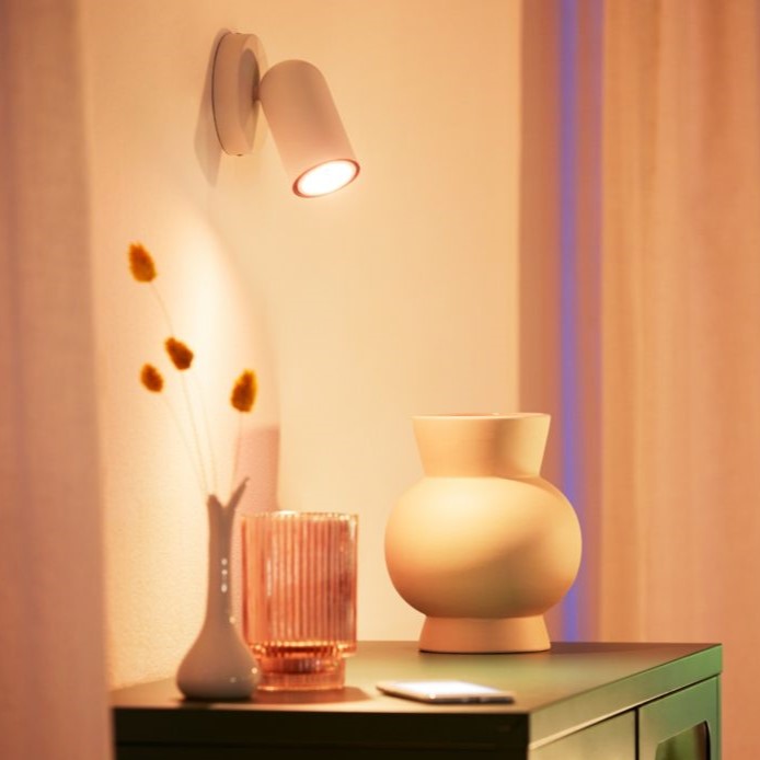 Ta inteligentna żarówka LED GU10 do reflektorów pozwala wybierać spośród wielu odcieni światła białego, od energetyzującego i zimnego po ciepłe i przytulne, lub po prostu wybierz jeden z zaprogramowanych trybów, takich jak Koncentracja czy Relaks, aby wytworzyć w pomieszczeniu pożądany nastrój. Możemy wybrać kolor z palety milionów barw oświetlenia, by stworzyć w swoim domu wyjątkową atmosferę dla każdej okazji.
