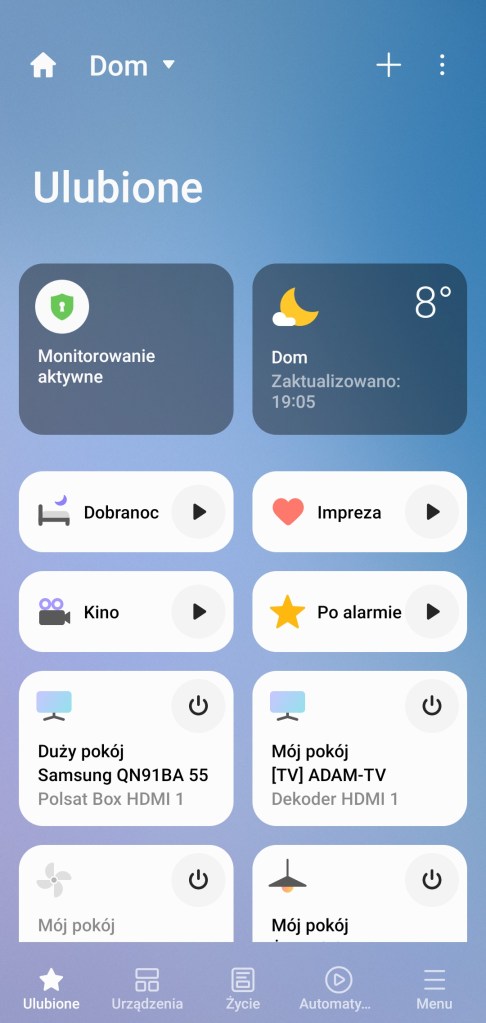 - Czas reakcji 1-2 sek. w ekosystemie SmartThings