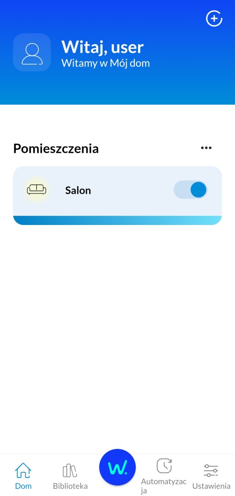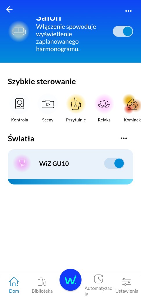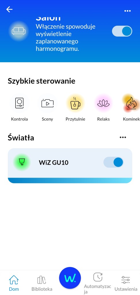 Główny panel urządzenia WiZ po dodaniu żarówki