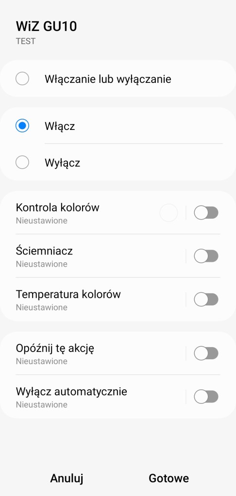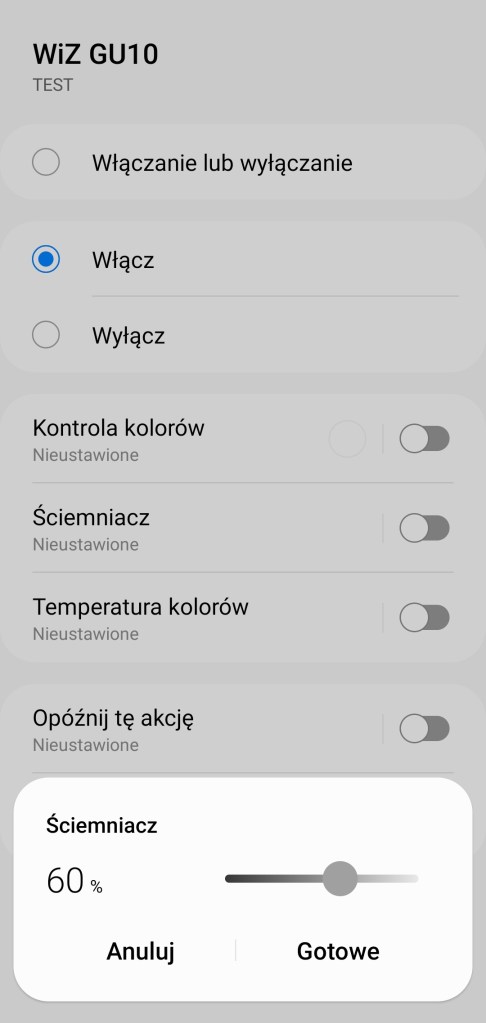Dodatkowo w ustawieniach znajdziemy możliwość konfiguracji płynnego włączenia/wyłączenia światła oraz standardowe możliwości jak zmiana nazwy czy ikony.
