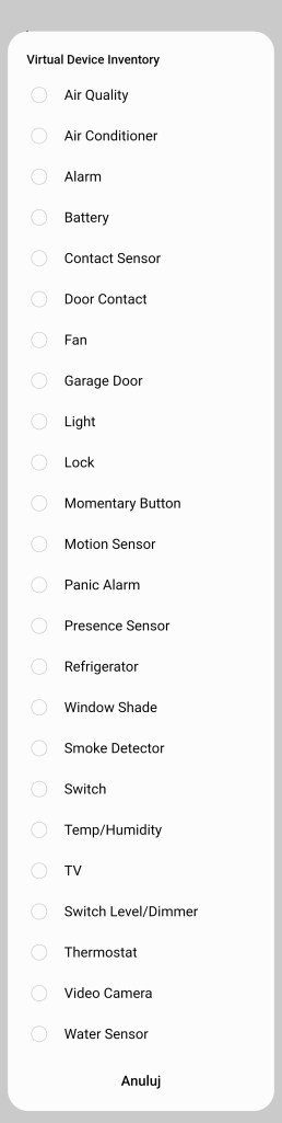 - W aplikacji SmartThings, przejdź do panelu wirtualnego urządzenia.