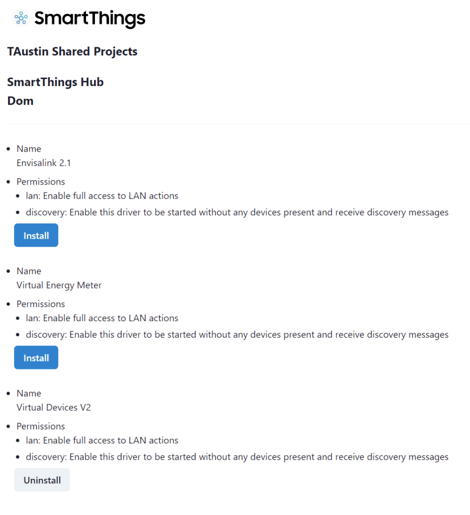 Aby zainstalować vEdge Creator, należy wejść na stronę oraz zalogować na konto Samsung, na którym został zbudowany Twój inteligentny dom. Zaakceptować warunki przystąpienia Enroll, a następnie możemy wybrać nowe sterowniki do zainstalowania. Klikając w Available Drivers (Dostępne sterowniki), wybieramy pożądane przez nas sterowniki urządzeń, w tym wypadku będzie to Virtual Devices V2, instaluj go poprzez kliknięcie Install. Pamiętajmy, że na chwilę obecną występuje ograniczenie instalacji maksymalnie 50 sterowników Edge na jedną centralę.
