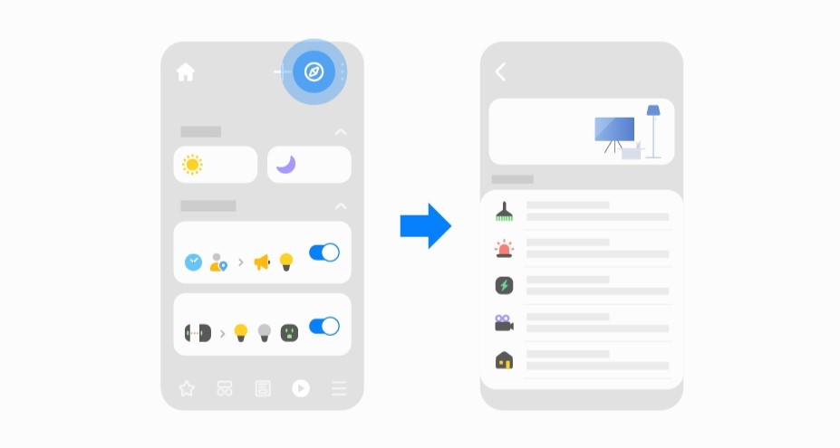 Dostęp do funkcji Odkrywanie można uzyskać z zakładki Automatyzacje, wybierając Ikonę kompasu u góry ekranu.