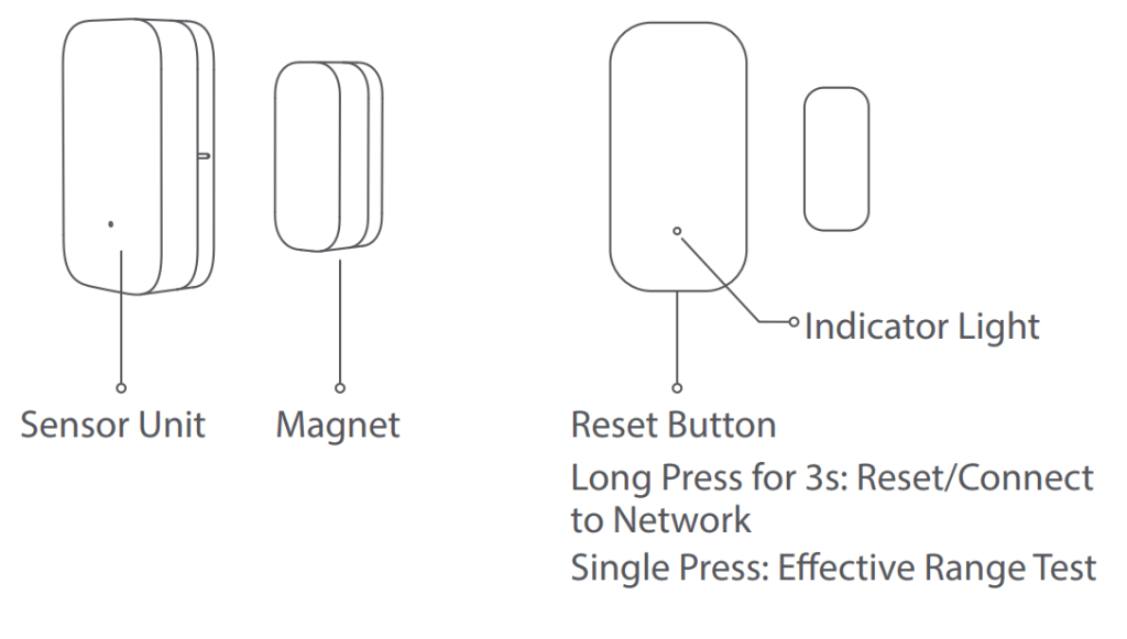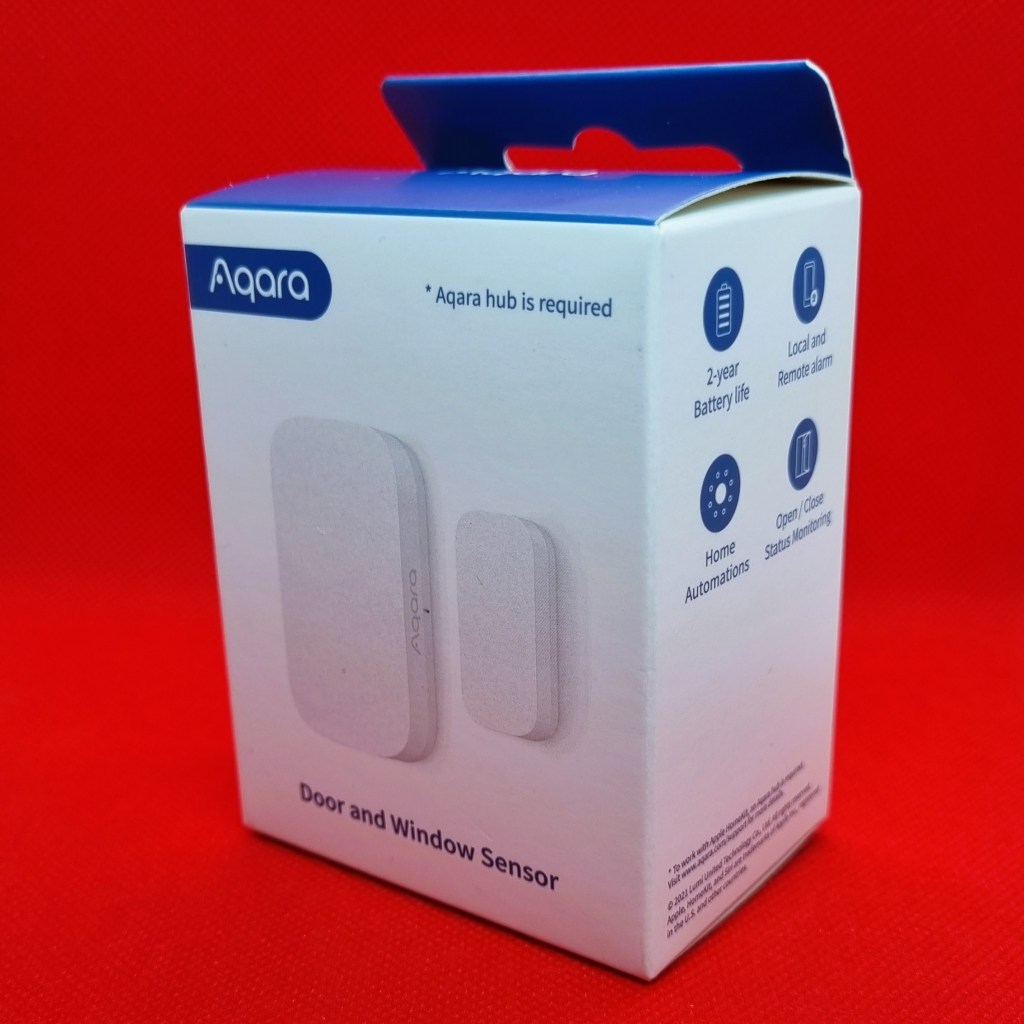 Aqara Door and Window Sensor (model MCCGQ11LM), jak każdy czujnik kontaktowy składa się z dwóch części głównego sensora i magnesu. Główną funkcją jest czujnik poinformowanie o rozłączeniu, czyli otwarciu lub zamknięciu, w przypadku zbliżenia części. Zmiana stanu jest szybko wysyłana do koncentratora SmartThings. Umieszczono małą diodę LED, służącą do sygnalizowania stanów. Maksymalna odległość czujnik-magnes to ≤ 22 mm (w stanie zamkniętym). Komunikacja odbywa się po protokole Zigbee 2.0. Zasilany jest poprzez jedną baterię CR1632. Producent deklaruje 2 lata działania na jednej baterii. Sensor ma bardzo małe wymiary tylko: 4,1 cm wysokości, 2,2 cm szerokości oraz 1,1 cm głębokości. Waga czujnika sięga 15 gramów. Dostępny tylko w białym kolorze. Przystosowany jest do działania w warunkach pokojowych w temperaturze od -10 do +50 °C oraz wilgotności 0 do 95 %.