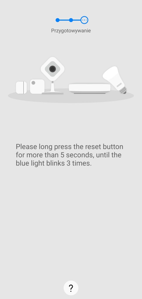 Aby zresetować urządzenie, musimy się wyposażyć w spinacz. Przy jego pomocy, u dołu czujnika, odnajdujemy wejście do przycisku resetowania (mały otwór w sensorze). Spinacz wciskamy na około 3/5 sekund w otwór, aż dioda LED zacznie migać. Po chwili czujnik jest gotowy do połączenia z nową centralą SmartHome.