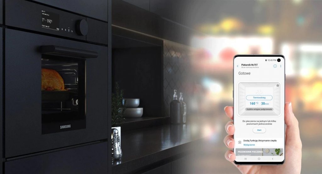 Również w kuchni możemy oszczędzać energię z inteligentnymi urządzeniami. Mniejsze zużycie prądu jest teraz możliwe, dzięki piekarnikowi Dual Cook Steam™. Jego wyjątkowa budowa oraz separator, który dzieli piekarnik na dwie komory sprawia, że możliwe jest korzystanie tylko z jednej z nich. Wówczas oszczędzamy energię i dbamy o domowy budżet. Natomiast lodówka Family Hub wyśle nam powiadomienie na telefon za pomocą aplikacji SmartThings zawsze wtedy, gdy zapomnimy zamknąć drzwi lodówki. W ten sposób minimalizujemy straty zimna i energię, które lodówka musi wykorzystać, żeby ponownie się schłodzić.