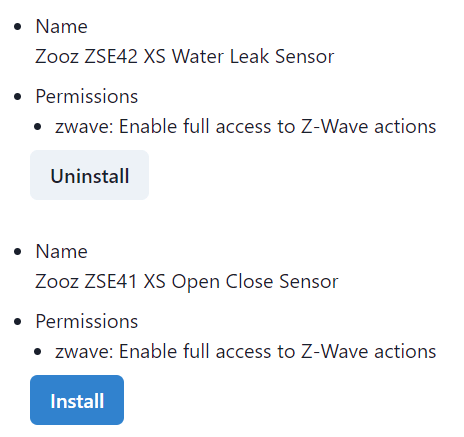 Aby uzyskać dostęp do sterowników, należy wejść na kanał dystrybucji Zooz Edge Drivers, gdzie znajdują się oficjalne sterowniki SmartThigs Edge. Link: https://bestow-regional.api.smartthings.com/invite/Y723nw3pqxMr. W pierwszej kolejności musimy zalogować się na konto, na którym powstał inteligentny dom. Zaakceptować warunki przystąpienia do programu, a następnie możemy wybrać nowe sterowniki do zainstalowania. Klikając w Available Drivers (Dostępne sterowniki) ukazuje się ich pełna lista, wybieram sterownik o nazwie Zooz ZSE42 XS Water Leak Sensor i instalujemy go poprzez kliknięcie Install. W każdej chwili możemy odinstalować klikając Uninstall. Pamiętajmy jednak, że na chwilę obecną możemy takich sterowników Edge zainstalować maksymalnie 80 na jednej centrali.