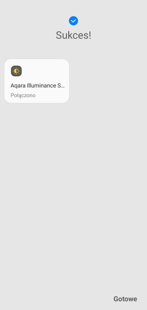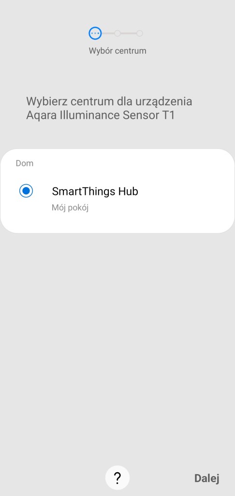 Aby dodać czujnik oświetlenia Aqara do aplikacji SmartThings, usuń zaślepkę baterii z wnętrza sensora. Na ekranie głównym aplikacji, klikamy przycisk Dodaj ( + ), znajdziesz go w prawym górnym rogu ekranu. Następnie Dodaj urządzenie, przesuwamy w dół do sekcji marek Wybór z listy urządzeń, wybieramy markę Aqara, a później Czujnik światła. Kontynuujemy pierwsze kroki instalacji, klikając Rozpocznij. Wybieramy centralę do połączenia z nowym urządzeniem. Skanujemy kod QR, znajdziemy go na pudełku lub w instrukcji, ostatecznie umieszczony jest również na pokrywce od baterii. Następnie na boku obudowy czujnika, przytrzymaj przycisk przez 5 sekund. Po chwili sensor zostanie wykryty i dodany do platformy SmartThings. Po pomyślnym znalezieniu urządzenia możemy zmienić jego nazwę lub zostawić domyślną. Możemy wybrać pokój dla nowego sensora oraz dodać do panelu ulubionych. Kończymy proces instalacji, klikając Gotowe. Czujnik światła pojawi się w wybranym pomieszczeniu.