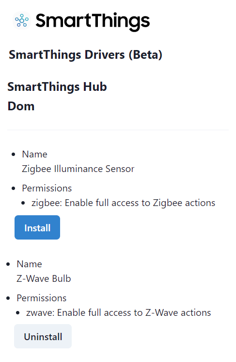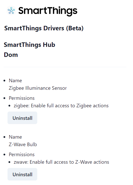 W tym celu instalacji sterownika SmartThings Edge należy wejść na stronę (https://api.smartthings.com/invitation-web/accept?id=450930c1-02a6-43d8-adaa-4cbc51027956) oraz zalogować na konto Samsung, na którym został zbudowany Twój inteligentny dom. Zaakceptować warunki przystąpienia, a następnie możemy wybrać nowe sterowniki do zainstalowania, wybierając ACCEPT. Klikając w Available Drivers (Dostępne sterowniki), wybieramy pożądane przez nas sterowniki urządzeń, w tym wypadku Zigbee Illuminance Sensor, instalujemy je poprzez kliknięcie Install. W każdej chwili możemy odinstalować, klikając Uninstall. Pamiętajmy, że na chwilę obecną możemy zainstalować sterowników Edge maksymalnie 60. W przyszłości ta procedura nie będzie konieczna do prawidłowego wykrycia czujnika.