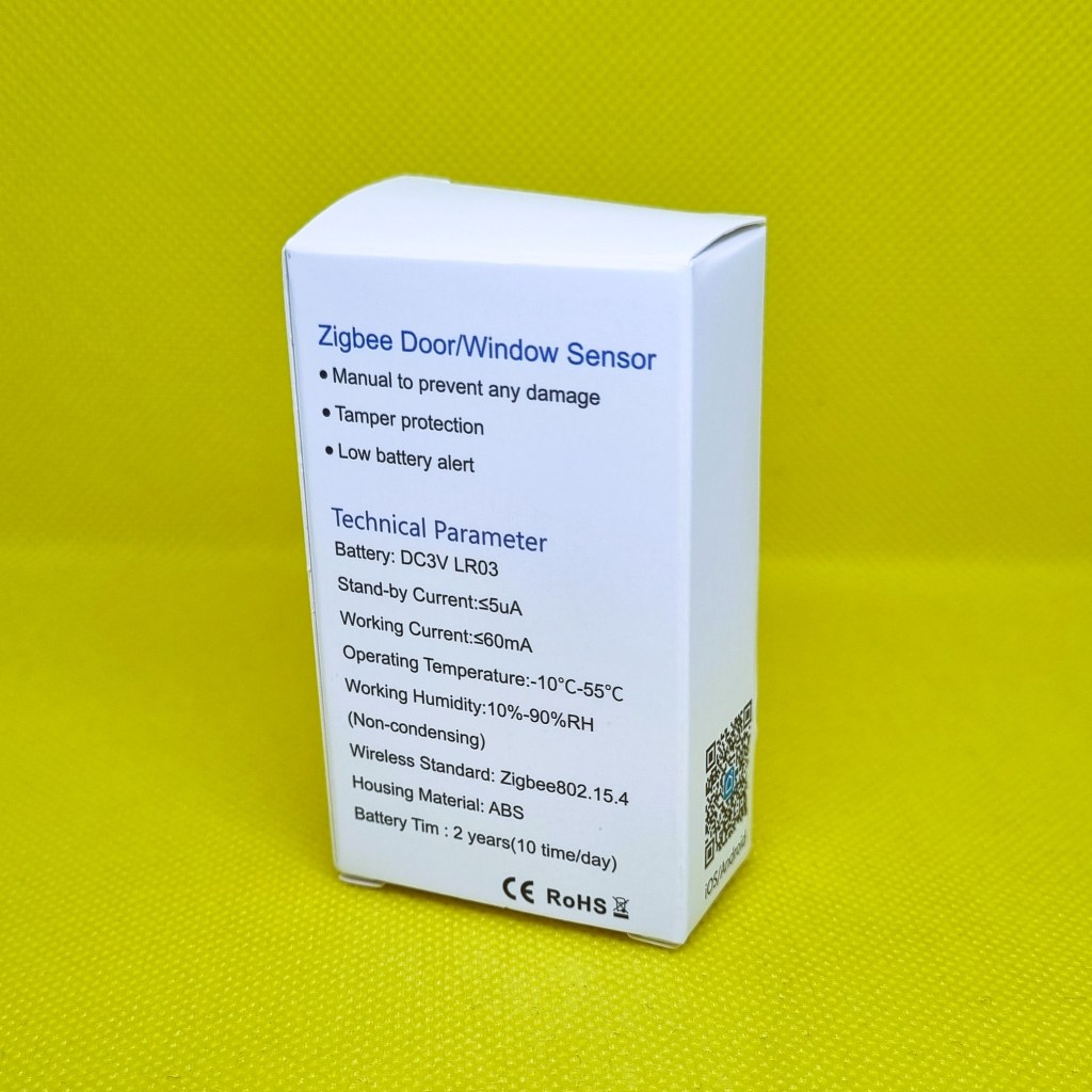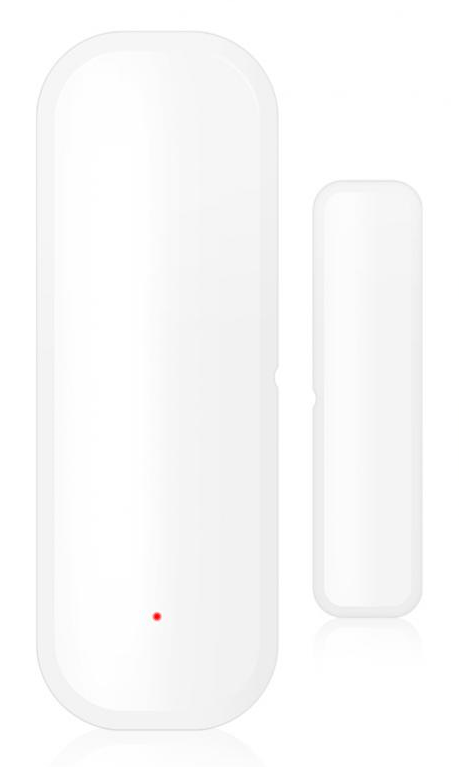 Tuya Contact Sensor (model TS0203), jak każdy czujnik kontaktowy składa się z dwóch części głównego sensora i magnesu. Główną funkcją jest czujnik poinformowanie o rozłączeniu, czyli otwarciu lub zamknięciu, w przypadku zbliżenia części. Wykrycie działa tylko z jednej strony urządzenia. Zmiana stanu jest wysyłana do koncentratora SmartThings, opóźnienie wynosi ok. 1 sekundy. Umieszczono małą diodę LED, służącą do sygnalizowania zmiany stanów sensora. Maksymalna odległość czujnik-magnes to ≤ 15mm (w stanie zamkniętym). Komunikacja odbywa się po protokole Zigbee 802.15.4. Zasilany jest poprzez dwie baterie AAA (mały paluszek), pierwsza para znajduje się w opakowaniu. Dodatkowo z danych technicznych dowiadujemy się: napięcie wejściowe wynosi DC3V LR03 * 2, prąd czuwania: ≤ 5uA, prąd roboczy: ≤ 60mA i powiadomienie o niskim napięciu: ≤ 2.5V. Producent deklaruje 2 lata na jednej parze baterii z częstotliwością 10 powiadomieniami na dzień. Sensor ma małe wymiary tylko: 7,0 cm wysokości, 2,5 cm szerokości oraz 1,9 cm głębokości. Sensor magnetyczny ma zaś rozmiary: 4,3 cm wysokości, 1,2 cm szerokości oraz 1,4 cm głębokości. Dostępny tylko w białym kolorze. Przystosowany jest do działania w warunkach pokojowych w temperaturze od -10 do +55 °C oraz wilgotności 0 do 95 %.