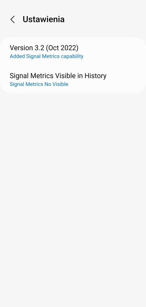Mamy również dodatkowe „Ustawienia” czujnika kontaktowego Tuya, dotyczą one etykiety metryki sygnału Zigbee w panelu sterowania urządzeniem oraz informację o wersji oprogramowania sterownika.
