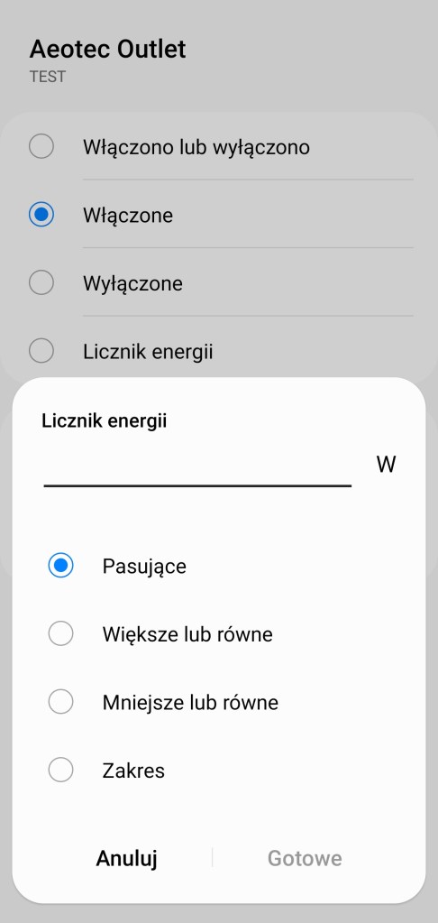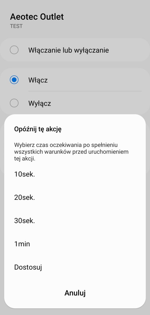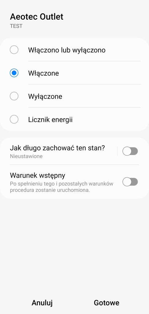 Tworzenie procedur (dawniej automatyzacje) „Jeśli … to Wtedy” musimy podzielić na dwa etapy, ponieważ znacznie różnią się dostępne opcje jeśli inicjujemy warunek „Jeśli” bądź „Wtedy”. W pierwszej możliwości „Jeśli” urządzenie pozwala na wybranie opcji „Włączono lub wyłączono”, czyli zmiana stanu, oraz „Włączone” i „Wyłączone” oraz „Licznik energii”, gdzie możemy otrzymać powiadomienie, kiedy tylko ustalona przez nas wartość pasuje, jest większa/mniejsza niż odczytana oraz zakres podanych wartości. Posiadamy również możliwość ustawienia, jak długo dany stan ma trwać, zanim uruchomiona zostanie procedura. W drugiej możliwości „Wtedy”, mamy ponownie opcje „Włączono lub wyłączono” – przypomnijmy zmiana stanu, „Włączone” i „Wyłączone”. Dodatkowo akcję uruchomienia możemy opóźnić o dowolny czas, jak i wyłączyć automatycznie po ustalonym czasie.
