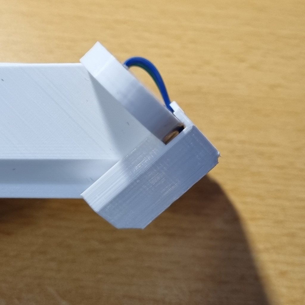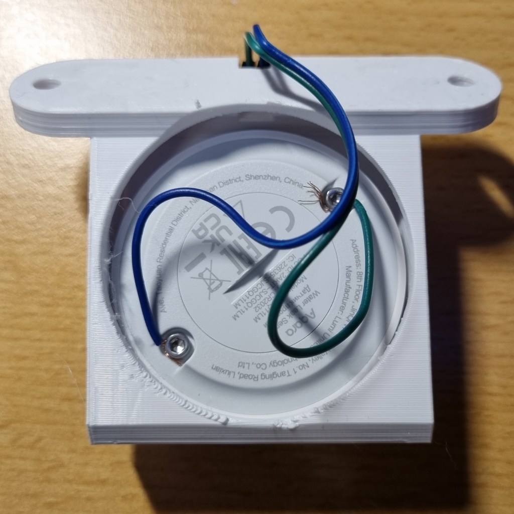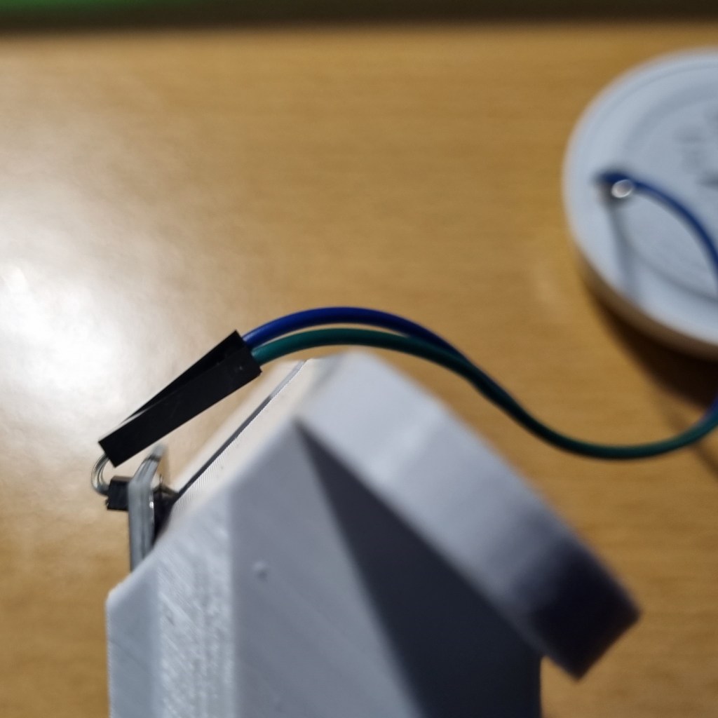 Kiedy mamy już czujnik, moduł wykrywający krople deszczu wraz z kablami i obudowę możemy przystąpić do złożenia całości. Z otrzymanych kabli z jednej strony zdejmujemy złącza i warstwę ochronną. Następnie przy pomocy małego imbusa, odkręcamy trochę dwie sondy na czujniku Aqara. Owijamy druciki wokół jednej i drugiej sondy, następnie dokręcamy je. Zamontowane kable powinny dobrze trzymać się czujnika. Wpinamy złącza z drugiej strony kabli do otrzymanego modułu/płytki wykrywającej krople deszczu. Możesz już sprawdzić, czy całość działa. Jeśli tak, możemy przystąpić do montażu. Wsuń płytkę w miejsce dachu domku, dalej zegnij o 45° złącze. Umieść czujnik Aqara we wnętrzu wydrukowanego domku. Umieść, jak najwięcej długości kabla we wnętrzy i zamknij pokrywę, za pomocą dołączonego koła. Teraz na górę sensora możesz nasunąć „czapeczkę”, która zasłoni złącze i modułu płytki. Na wierzchu sensora powinna pozostać tylko większość płytki do wykrycia kropel deszczu oraz mały skrawek złączy z tyłu obudowy domku. Całość zdjęć z tego procesu poniżej, wraz z finalnym rezultatem.
