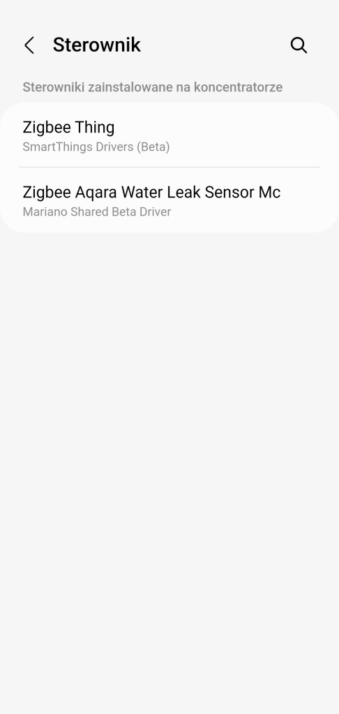 Przed dodaniem Aqara Water Leak Sensor do aplikacji SmartThings musimy uzyskać dostęp do sterowników SmartThings Edge, które pozwolą na prawidłowe wykrycie urządzenia oraz pozwolą działać sensorowi lokalnie w centrali. W przypadku odłączenia Internetu pozwoli to czujnikowi nadal wysyłać informację do koncentratora SmartThings, a on będzie mógł uruchomić zaprogramowane procedury. Z naszych poszukiwań wynikło, że najlepszym sterownikiem dla sensora Water Leak, będzie Zigbee Aqara Water Leak Sensor Mc autorstwa programisty Mariano.