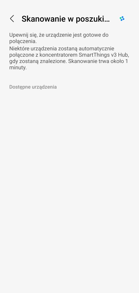 Aby dodać czujnik zalania do aplikacji SmartThings, musimy wykonać poniższą instrukcję. W pierwszej kolejności wyjmij zaślepkę baterii. Na ekranie głównym aplikacji, klikamy przycisk Dodaj ( + ), w prawym górnym rogu ekranu. Następnie Dodaj urządzenie, stuknij Skanuj znajdujący się w sekcji Skanowanie w poszukiwaniu urządzeń w pobliżu. Teraz klikamy przycisk resetu 5 razy, znajdziesz go na górze obudowy, pod narysowaną kropelką. Po chwili czujnik zalania zostanie odnaleziony przez centralę platformy SmartThings. Możemy zmienić jego nazwę, sensor znajdziesz w „nieprzypisanym” pokoju. Po dłuższej chwili pojawią się odczyty czujnika. Możemy ten proces przystpieszyć, zanurzając czujnik w małej ilości wody, aby zmienił stan i wysłał nowy do koncentratora.