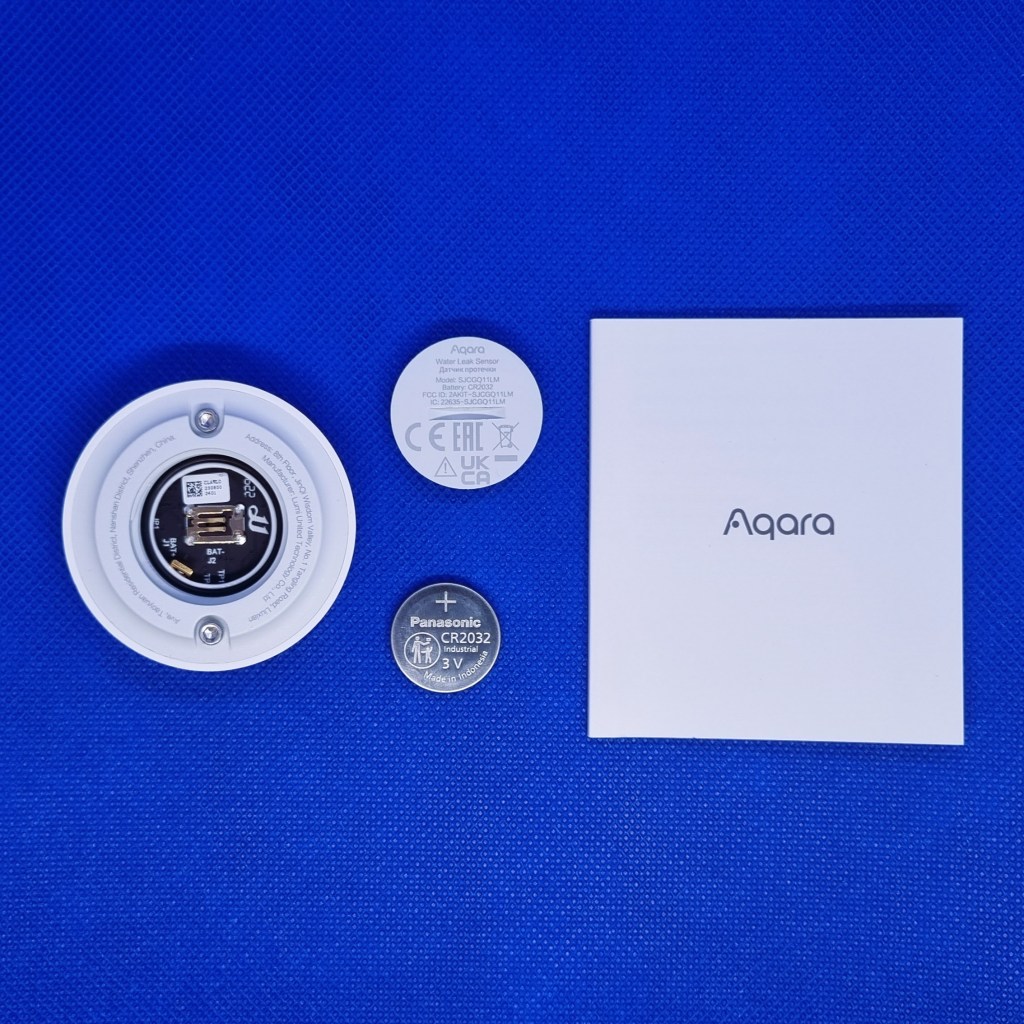 Aqara Water Leak Sensor model SJCGQ11LM to standardowy czujnik zalania. Sensor posiada klasyczną wodoszczelną obudowę, na spodzie urządzenia znajdują się 2 metalowe nóżki, jeśli dojdzie do zamknięcia obwodu pomiędzy nimi, jest to sygnał do wydania powiadomienia o wykryciu zalania. Komunikacja odbywa się po protokole Zigbee. Zasilany jest poprzez jedną baterię CR2032. Producent deklaruje 2 lata działania na jednej baterii. Sensor ma małe wymiary, jest to tylko: 5 cm średnicy oraz 1,5 cm wysokości. Dostępny tylko w białym kolorze. Przystosowany jest do działania w warunkach pokojowych od -10 do +55 °C oraz wilgotności 0 do 100 %.