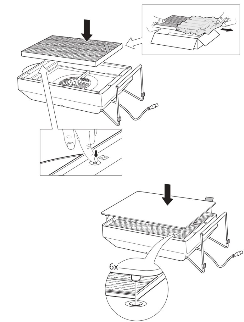 Przed pierwszym uruchomieniem oczyszczacza powietrza IKEA, należy zamocować nóżki i rozpakować główny filtr tzw. cząstek stałych. W tym celu otwieramy przedni panel urządzenia, a następnie wyjmujemy filtr cząstek stałych. Usuwamy opakowanie z głównego filtra i jeśli jest dołączony, również z dodatkowego filtra gazu. Montujemy całość z powrotem, pamiętając najpierw filtr gazu (opcjonalny), później filtr główny i na koniec zamykamy obudowę. Następnie wkładamy przedni panel ozdobny we wszystkie 6 otworów, dociskamy i zamykamy. Teraz podepnij oczyszczacz do zasilania, lub inteligentnego gniazdka.