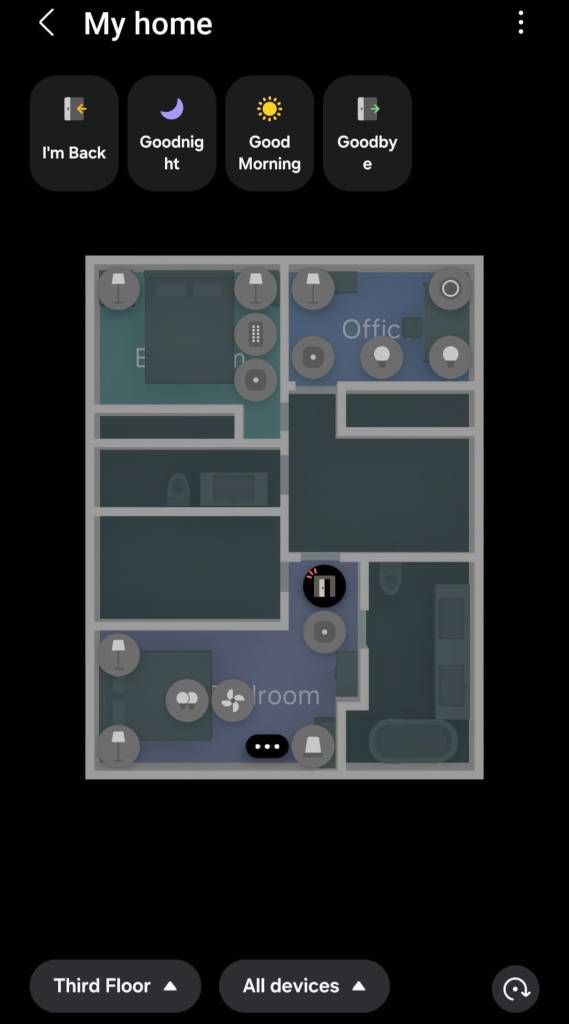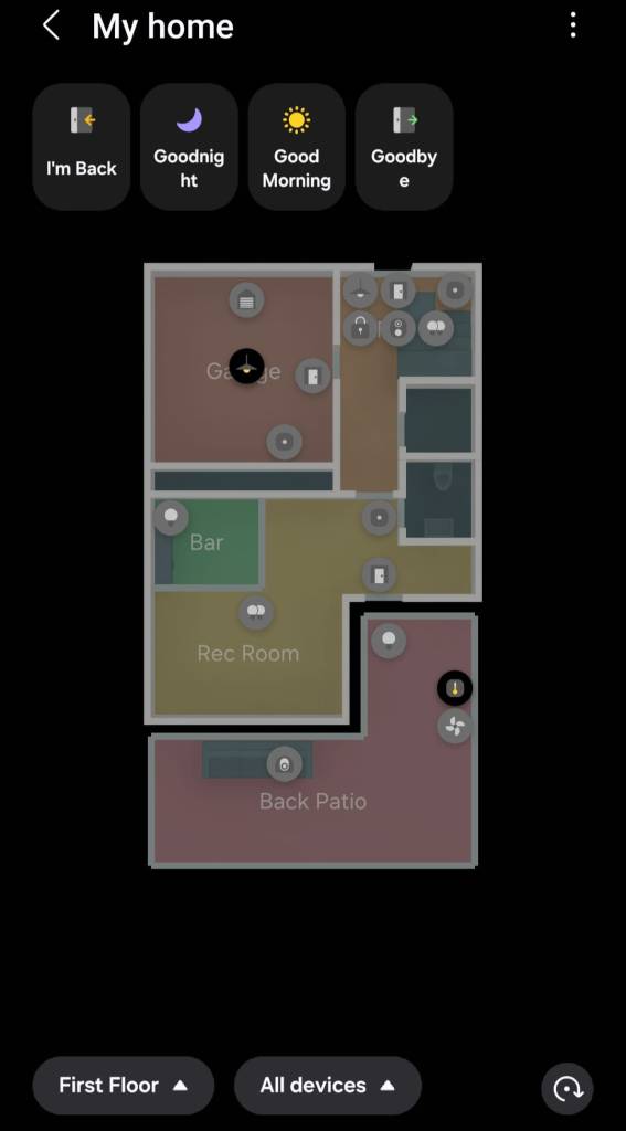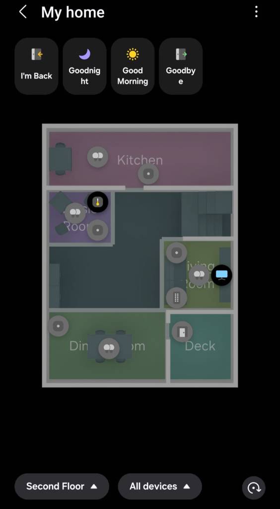 Jedną z nowych możliwości oferowanych przez aplikację SmartThings jest funkcja widoku mapy, z angielskiego Map View. Ta opcja pozwala użytkownikom tworzyć wirtualny plan swojego inteligentnego domu, bardzo podobnie jak w grze The Sims, gdzie możemy dodawać podłogi, pokoje, ściany, meble i inne elementy, aby zaprojektować wirtualny dom, jak najdokładniej. Jest to swojego rodzaju wirtualny „plac zabaw”, na którym można umieszczać inteligentne urządzenia dokładnie tam, gdzie są w rzeczywistości, a następnie zarządzać nimi.