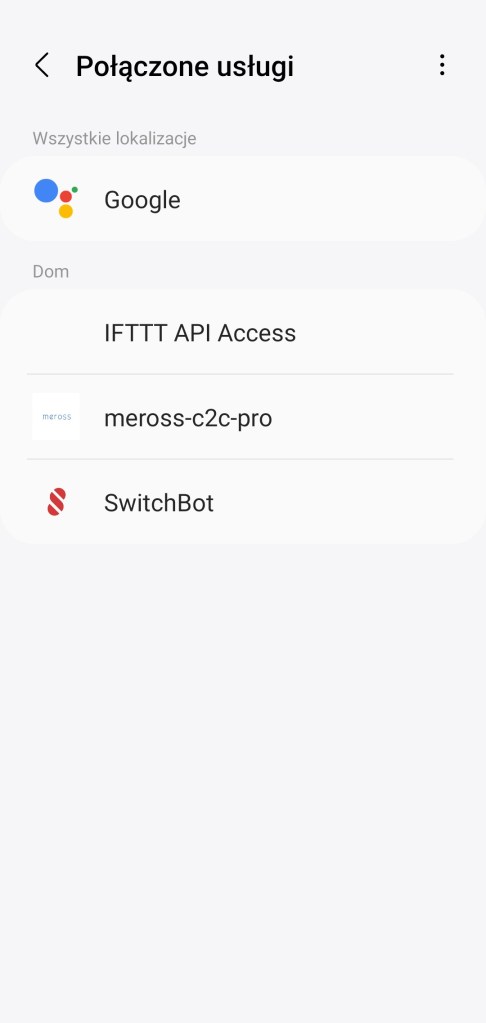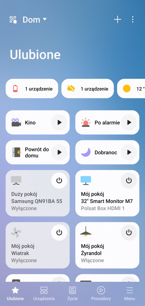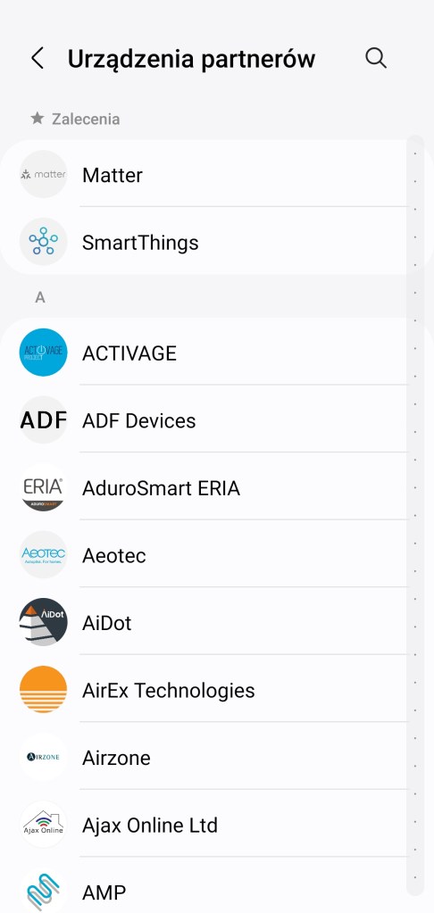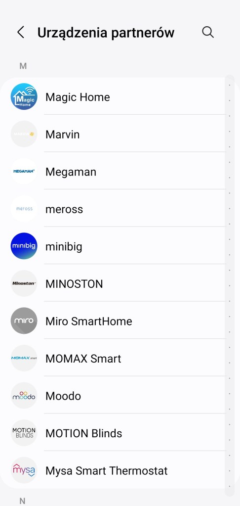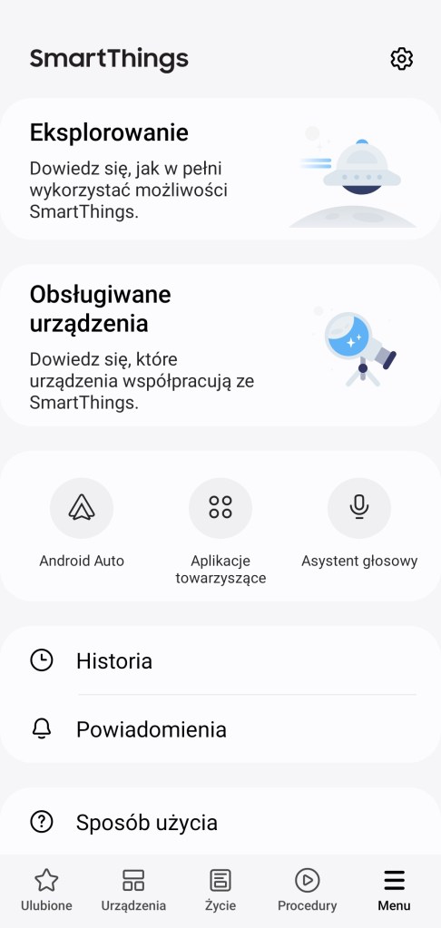- Brak dodatkowych opcji w aplikacji SmartThings