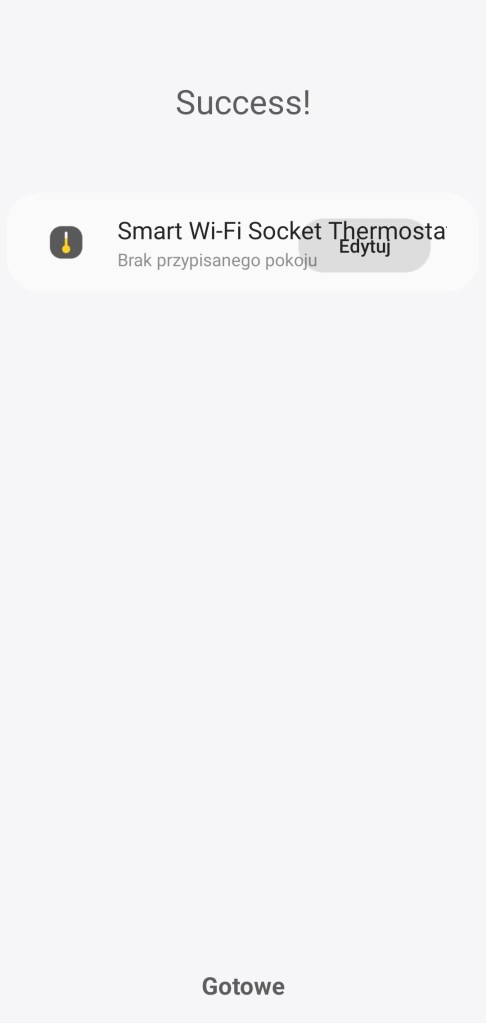 Jeśli już posiadamy zainstalowany termostat Meross. Przechodzimy do aplikacji SmartThings, na ekranie głównym, klikamy ( + ) „Dodaj”, następnie Dodaj urządzenie. Wybieramy Urządzenia partnerów, z listy firm, wyszukujemy markę Meross. Klikamy Dalej, po czym zostaniemy przeniesieni na stronę internetową Meross, gdzie logujemy się na konto utworzone na serwerach Meross. Zostaniemy poinformowani o udanym połączeniu z ekosystemem SmartThings. Po chwili pokaże nam się lista wszystkich urządzeń z aplikacji Meross. Klikamy Gotowe, znalezione urządzenia pojawią się w tymczasowym pomieszczeniu o nazwie „Brak przypisanego pokoju”. Przytrzymując kafelek termostatu możemy w każdej chwili zmienić jego nazwę i przypisany pokój.