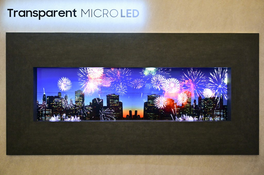 Dzięki nowym, przeźroczystym diodom MICRO LED Samsung pokazuje światu, że możliwości ekranów są nieograniczone. Ekran, który wygląda jak tafla przeźroczystego szkła, zawiera niezwykle małe diody MICRO LED i jest wytwarzany w precyzyjnym procesie, który eliminuje widoczne połączenia i refrakcję światła. Wyobraźmy sobie, że próbujemy zamontować mały przedmiot, cieńszy niż ludzki włos, w określonej pozycji i pod określonym kątem. Następnie powtórzmy tę czynność ponad pół miliona razy. Tak powstają ekrany Micro LED.