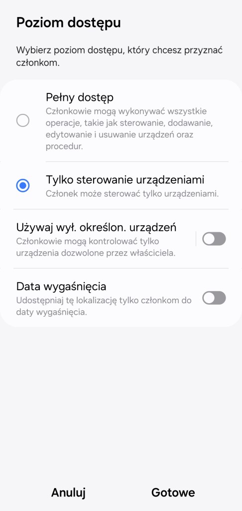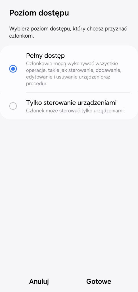 SmartThings Together umożliwia także bezpieczne udostępnianie wybranych urządzeń i doświadczeń oraz kontrolę nad tym, kto i kiedy ma do nich dostęp. Dzięki temu znacznie łatwiej jest przyjmować gości, niezależnie od tego, czy odwiedza Cię przyjaciel, czy ktoś, kto przebywa w Twoim obiekcie wakacyjnym na weekend.