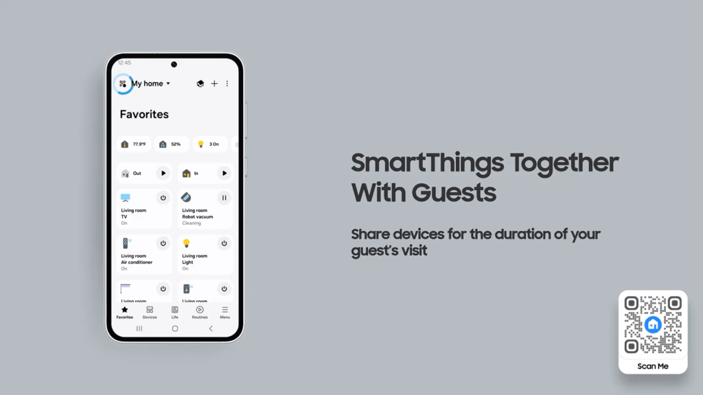 SmartThings zaprezentował nowy sposób dzielenia się swoim inteligentnym domem z rodziną, przyjaciółmi i gośćmi poprzez skanowanie kodu QR. Tym samym już wkrótce będziemy mogli na określony okres czasu, odwiedzającym nas przyjaciołom czy gościom, udostępnić potrzebne urządzenia RTV, AGD oraz czujniki Smart Home.