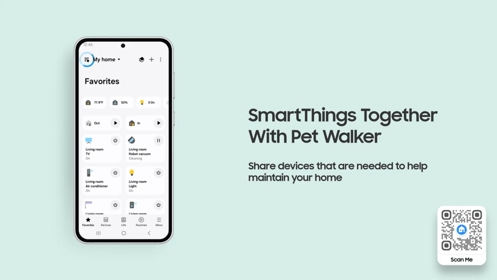 Kody QR ułatwiają dodawanie nowych członków rodziny lub opiekunów do interfejsu domowego, co pozwoli im wygodnie sterować odpowiednimi urządzeniami inteligentnego domu przez zdefiniowany czas. W ten sposób Twoi goście będą mogli otworzyć drzwi, ustawić termostat i rozgościć się. W wielu domach jest jedna osoba, która jest miłośnikiem technologii „inteligentnego domu”, a reszta rodziny musi korzystać z jej wiedzy i doświadczenia. Teraz dzięki SmartThings Together wszyscy użytkownicy mogą zarządzać inteligentnym domem na podstawie swoje indywidualne potrzeby i preferencje.