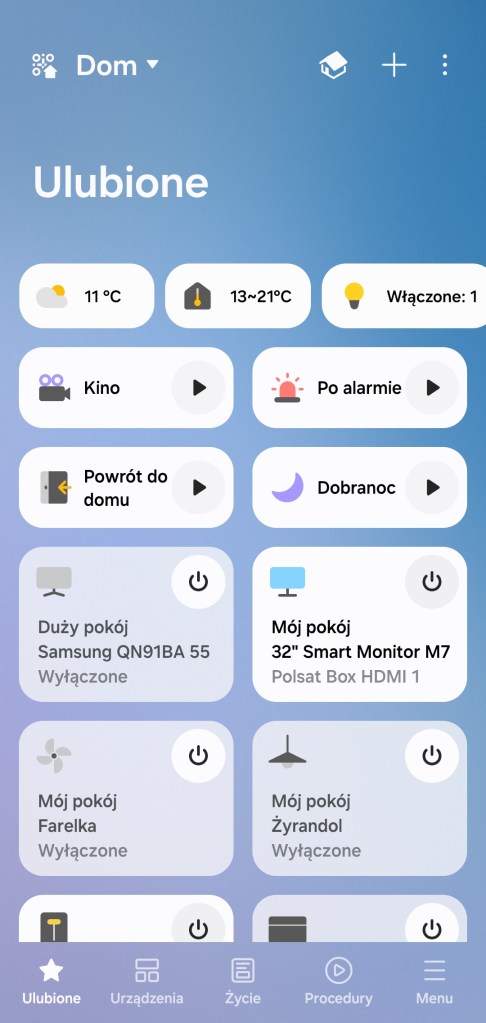 Dodatkowo wybrać, które informacje mają być wyświetlane, wykonując następujące kroki. Karta Ulubione >> Więcej opcji ( ⋮ ) >> Pokaż stan Dom >> Włącz/wyłącz >> np. Lampy.