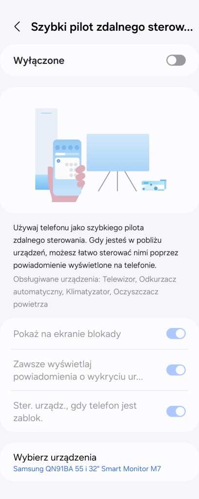 Teraz możesz używać Quick Remote tzw. Szybki pilot do klimatyzatorów, oczyszczaczy powietrza i robotów sprzątających, dotychczas funkcja obejmowała tylko telewizory.