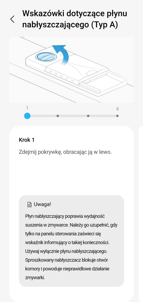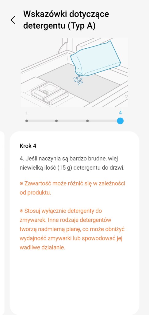 Zmywarka korzysta również z usługi SmartThings Home Care, której celem jest kontrolowanie urządzeń AGD i ich części eksploatacyjnych, jak np. filtry. Usługa polega na wysyłaniu powiadomień o potrzebie uzupełnienia detergentów czy wymiany części. Dodatkowo oferuje rozwiązania najpoplularniejszych problemów, jeśli coś pójdzie nie tak.