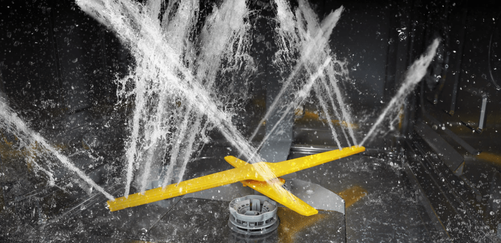 Lepsze rezultaty zmywania z wykorzystaniem WaterJet Clean™. Nowy rotujący podwójny system dysz pozwala na jeszcze dokładniejsze zmywanie i dotarcie nawet do trudno dostępnych elementów naczyń. Dwa ramiona z oddzielnym strumieniem wody obracające się w różnych kierunkach umożliwiają dotarcie nawet do trudno dostępnych miejsc i usunięcie nawet silnych zabrudzeń w naczyniach o nietypowych kształtach. Dzięki WaterJet Clean™ zmywarka podczas całego procesu zmywania i suszenia zużywa tylko 9,2 litrów wody, bez obniżania jakości mycia. Oszczędzając dodatkowo energię elektryczną.