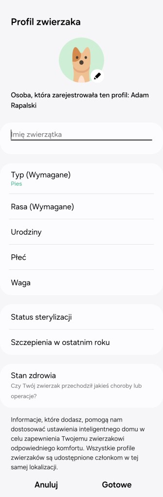 SmartThings Pet Care to usługa w aplikacji SmartThings, która synchronizuje się z urządzeniami inteligentnego domu, takimi jak oczyszczacz powietrza, odkurzacz Bespoke Jet AI, czy telewizory. Dzięki propozycjom automatyzacji umożliwienia domownikom kontrolowania swojego zwierzaka np. pod nieobecność w domu. A to wszystko z poziomu aplikacji mobilnej SmartThings.