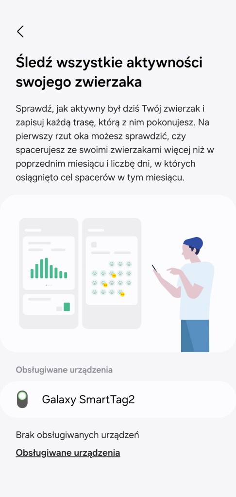 W zakładce Czynności możemy zobaczyć szczegóły aktywności Twojego zwierzaka. I za pomocą Samsung GalaxyTag 2 śledzić lokalizację naszego ukochanego pupila.